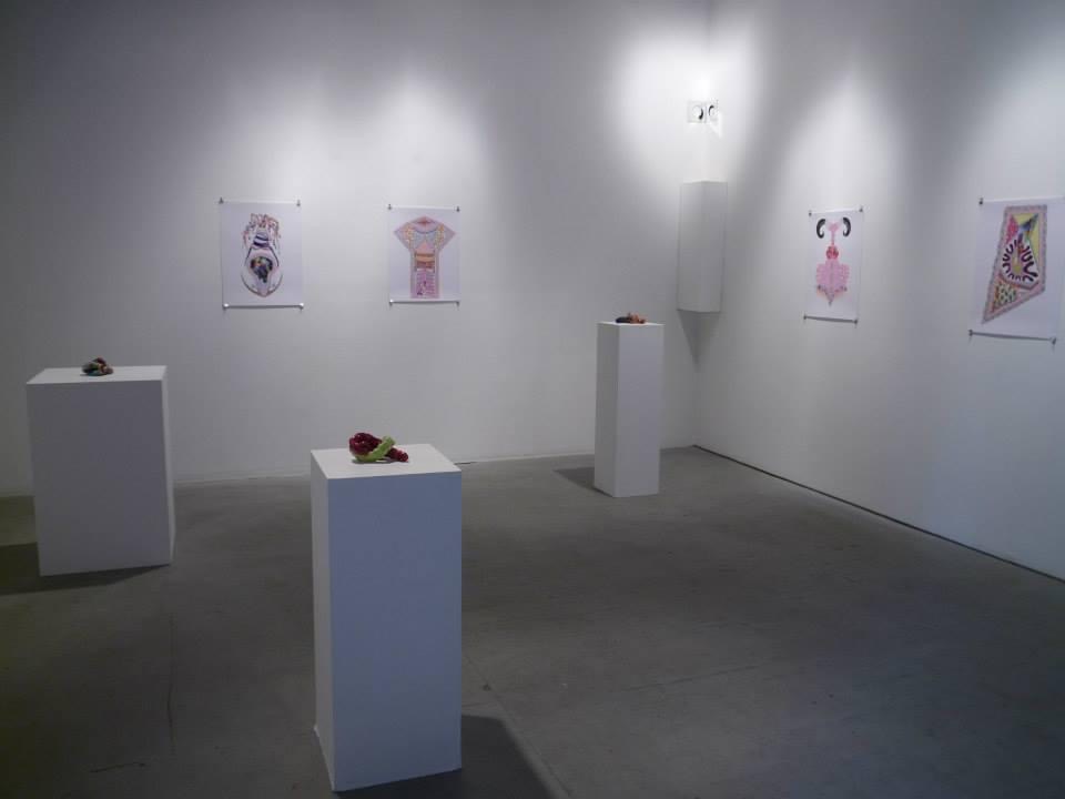 This show contained small sculptures made from air drying clay and automotive paint with hand done drawings using pen and airbrush.