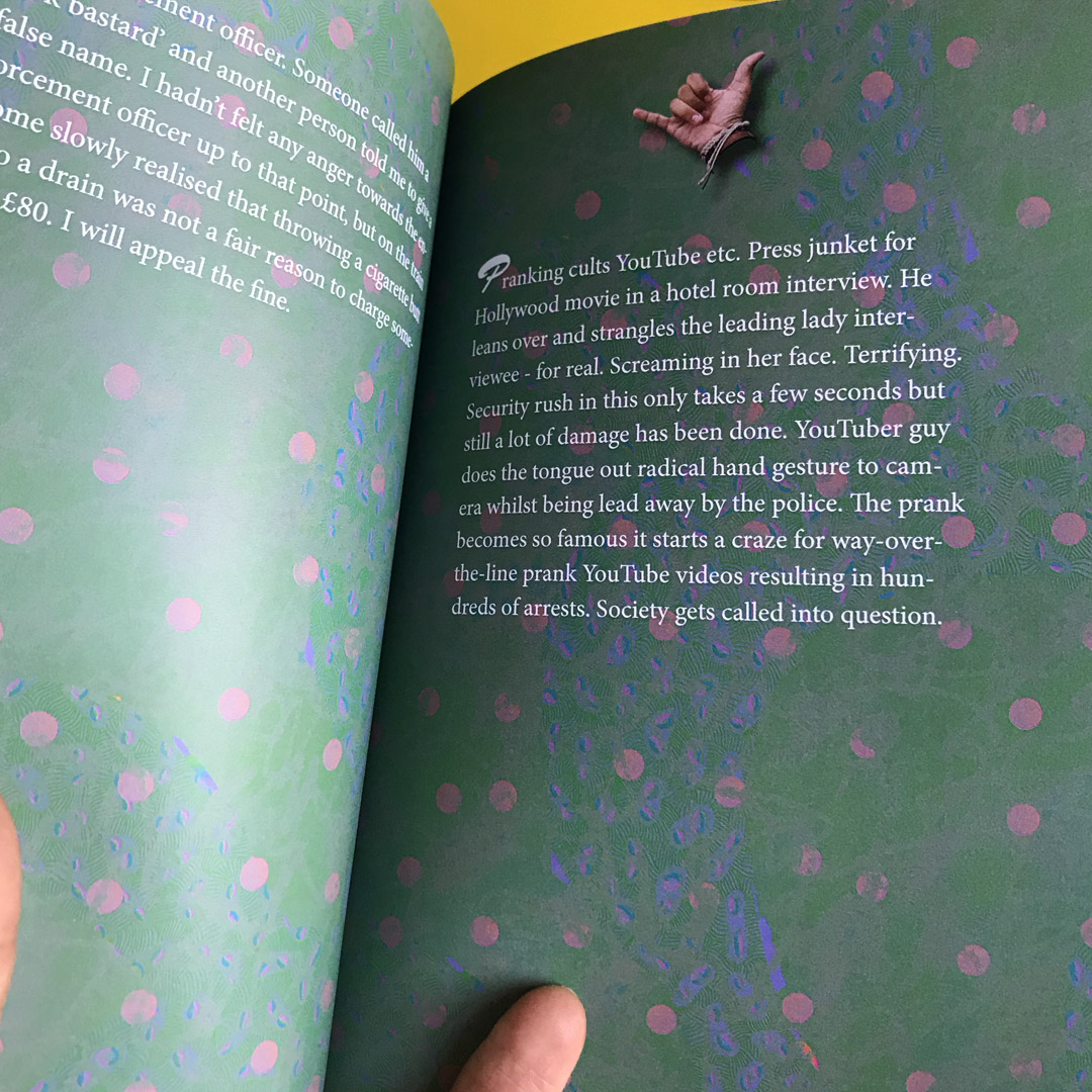 A hallucinatory poem set in artwork that is part children’s book, part psychedelic headspace. There’s Always Things Falling Out The Sky is Sammy Playford’s ritualistic conversation with Bigfoot, Faeries and aliens in the Bristol woods near her home. A serious investment in magic and self-worth, the poem wields protection magic and unpicks the deleterious effects of selling your labour to live.